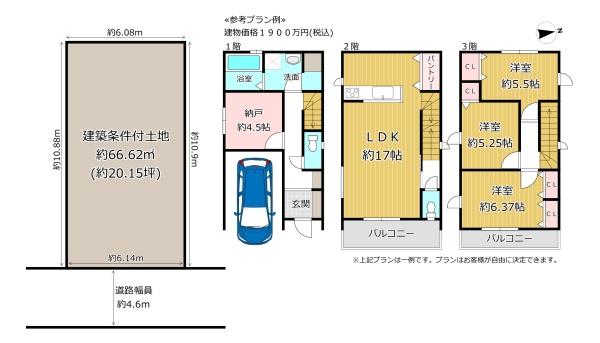 ※建築条件土地の情報内に掲載されている、建物プラン例は、土地購入者の設定プランの参考の一例であって、プランの採用可否は任意です。