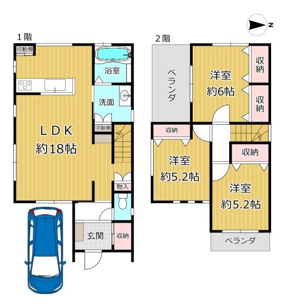 階建 2階建 LDK広さ 18帖以上 上水道 公営 汚水 下水道 ガス 都市ガス 床暖房 全居室収納 システムキッチン カウンターキッチン ※設備名をクリックで対象の設備の物件一覧を絞り込みローンシミュレーション