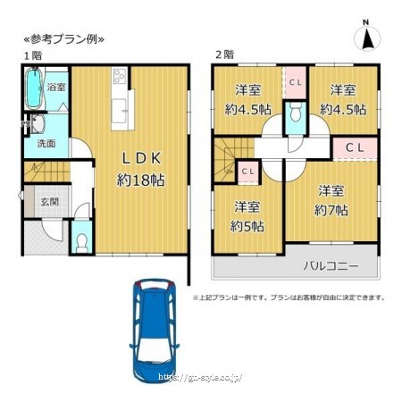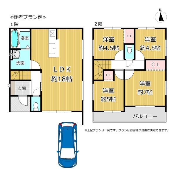 ※建築条件土地の情報内に掲載されている、建物プラン例は、土地購入者の設定プランの参考の一例であって、プランの採用可否は任意です。