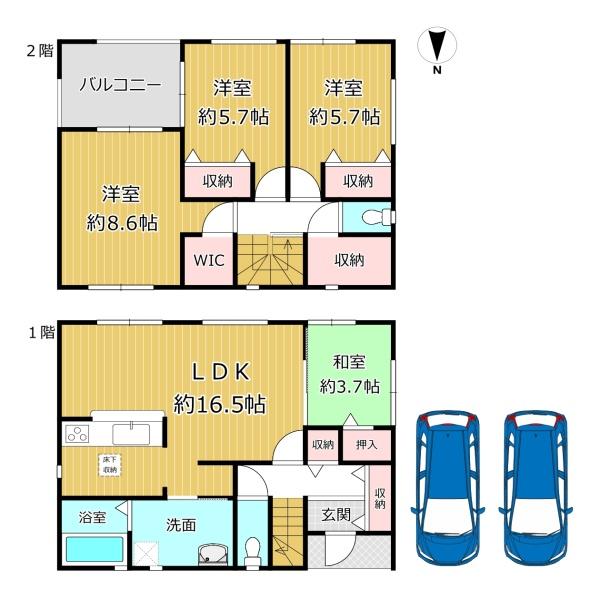 平坦地 閑静な住宅地 階建 2階建 日当り良好 通風良好 LDK広さ 15帖以上 和室 上水道 公営 汚水 下水道 ガス 都市ガス 複層ガラス シャッター雨戸 駐車可能台数 2台可 24時間換気システム 照明器具 全居室収納 床下収納 カウンターキッチン ガスコンロ コンロ口数 三口 グリル 独立洗面台 追い焚き シャワー トイレ2ヶ所 バルコニー バルコニー有 南面バルコニー TVインターホン 火災警報器(報知機) 周辺交通量少なめ ※設備名をクリックで対象の設備の物件一覧を絞り込みローンシミュレーション