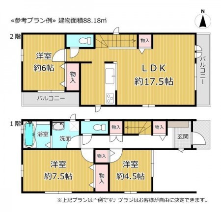 ※建築条件土地の情報内に掲載されている、建物プラン例は、土地購入者の設定プランの参考の一例であって、プランの採用可否は任意です。